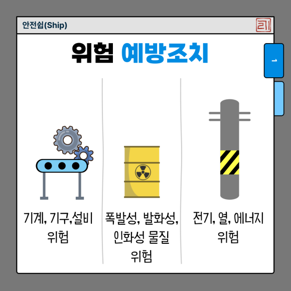 → 위험을 종류별로 구분하고 그에 해당하는 알맞은 방법으로 산업재해
