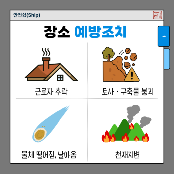 → 산업재해가 일어날 수 있는 다양한 경우의 장소별 산업재해 예방을 위한