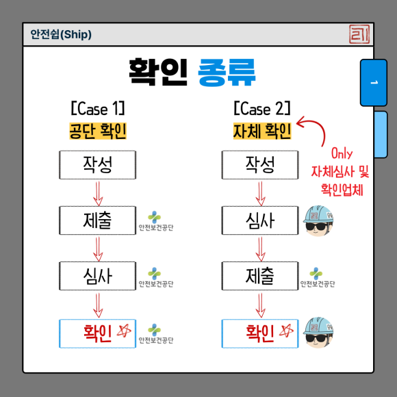 계획서 평가에도 "산업안전지도사"평가가 있었던 것처럼 확인 절차 시에도 산업안전지도사 확인이 있습니다.