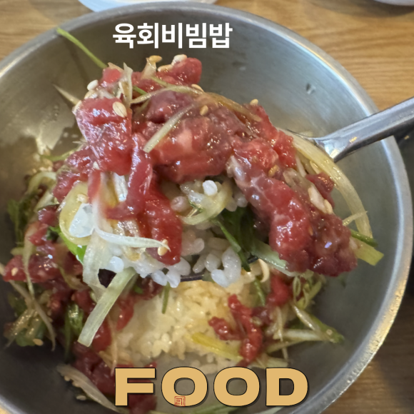 저는 육회비빔밥을 시켰어요. 와~~ 대박!! 뭉티기 집이라 그런지 육회가 너무 신선하고 맛있었어요. 솔직히 양이 많은 편은 아니었지만 살짝 아쉬운 양을 맛으로 이겼네요. ㅎㅎ 정말 맛있었습니다.