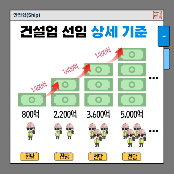 안전관리자와 다르게 보건관리자는 일정 금액이 추가 될 때마다 인원 추가를 해야합니다. 그 금액은 1,400억 입니다.
