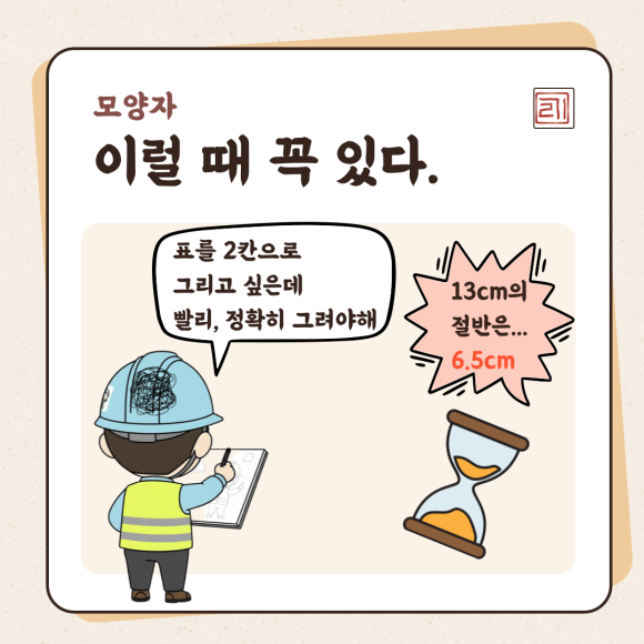 그러기 위해서 "자"를 사용하게 되는데 문제는 세로 칸 기준 2칸 나누기, 3칸 나누기 등의 표를 그릴 때 답안지에 정확한 배분과 빠르게, 이쁘게 그리는 것이 시험날에는 어렵다는 것 입니다.