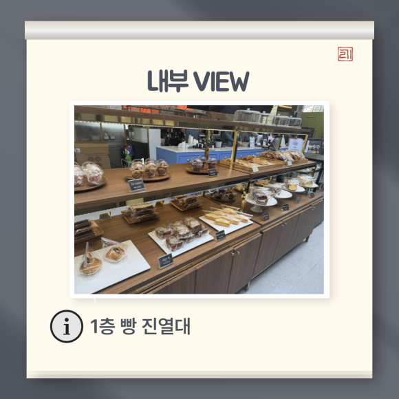 1층으로 들어가면 카운터와 카운터 옆에 빵 진열대가 있습니다. 브런치가 목적이라 빵을 추가 구매하지는 않았습니다. 빵 냄새를 맡으며 2층으로 자리 잡으러 올라갔습니다.