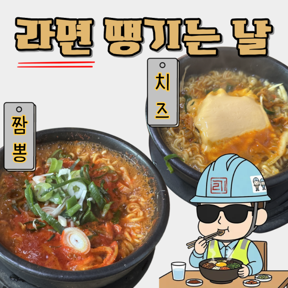 라면 땡기는 날 메뉴 중 단연 인기메뉴는 "짬뽕라면"과 "치즈라면" 입니다.