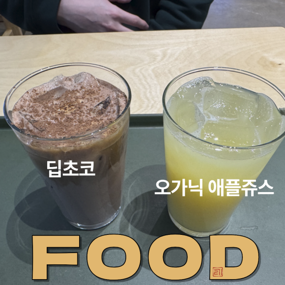 커피를 너무 많이 먹어서 저는 오가닉 애플쥬스를 먹었습니다.